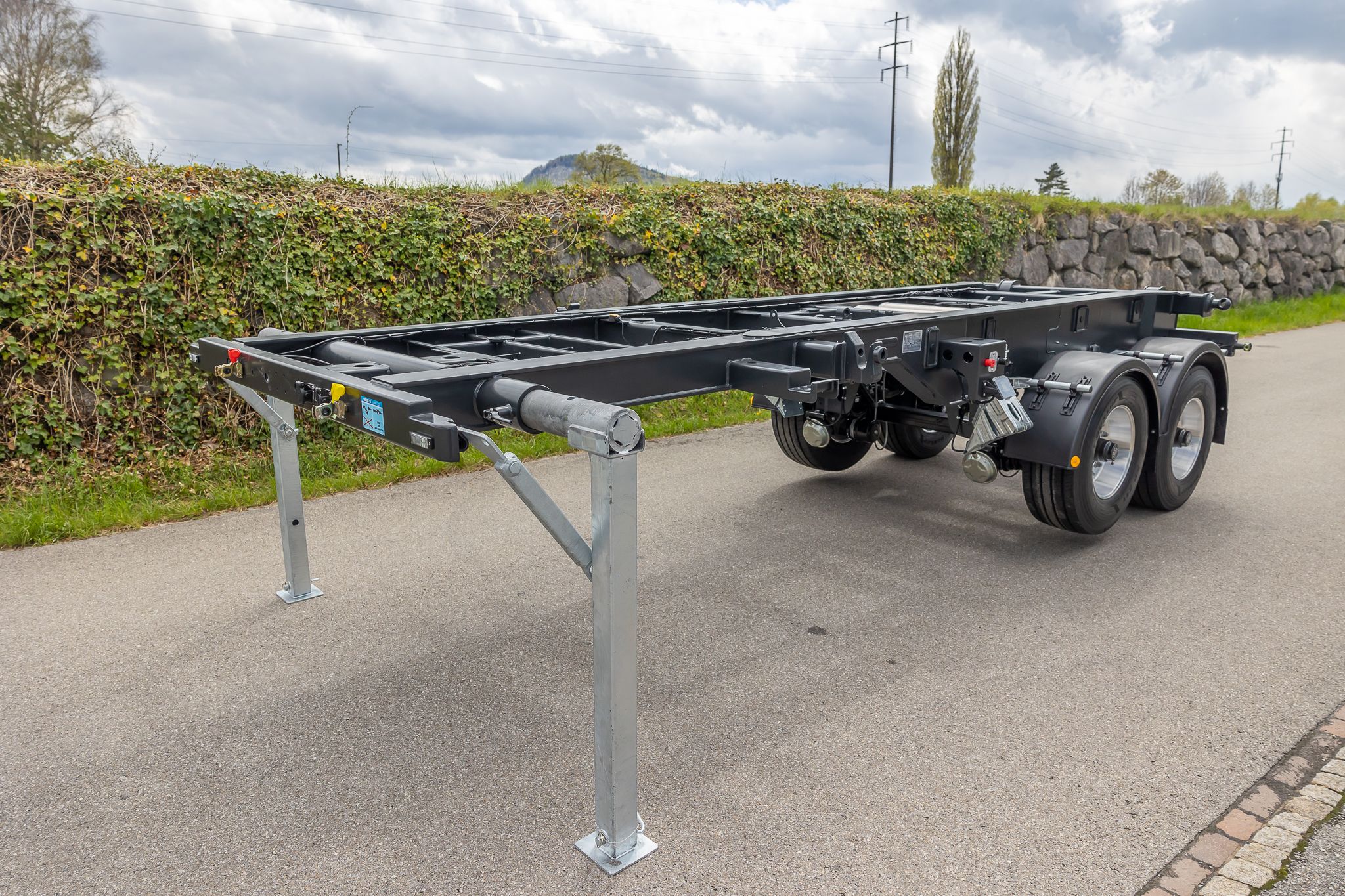 Jede Komponente wurde exakt auf die nachfolgenden Aufbauarbeiten und Systemanbindungen abgestimmt. Das Fahrgestell ist für ein zulässiges Gesamtgewicht von 35 Tonnen, eine Achslast von 20 Tonnen (Aggregat) und eine Sattellast von 15 Tonnen ausgelegt. Zwei King-Pin-Positionen ermöglichen eine flexible Gewichtsverteilung, ideal für den Einsatz mit 2- oder 3-achsigen Zugfahrzeugen.