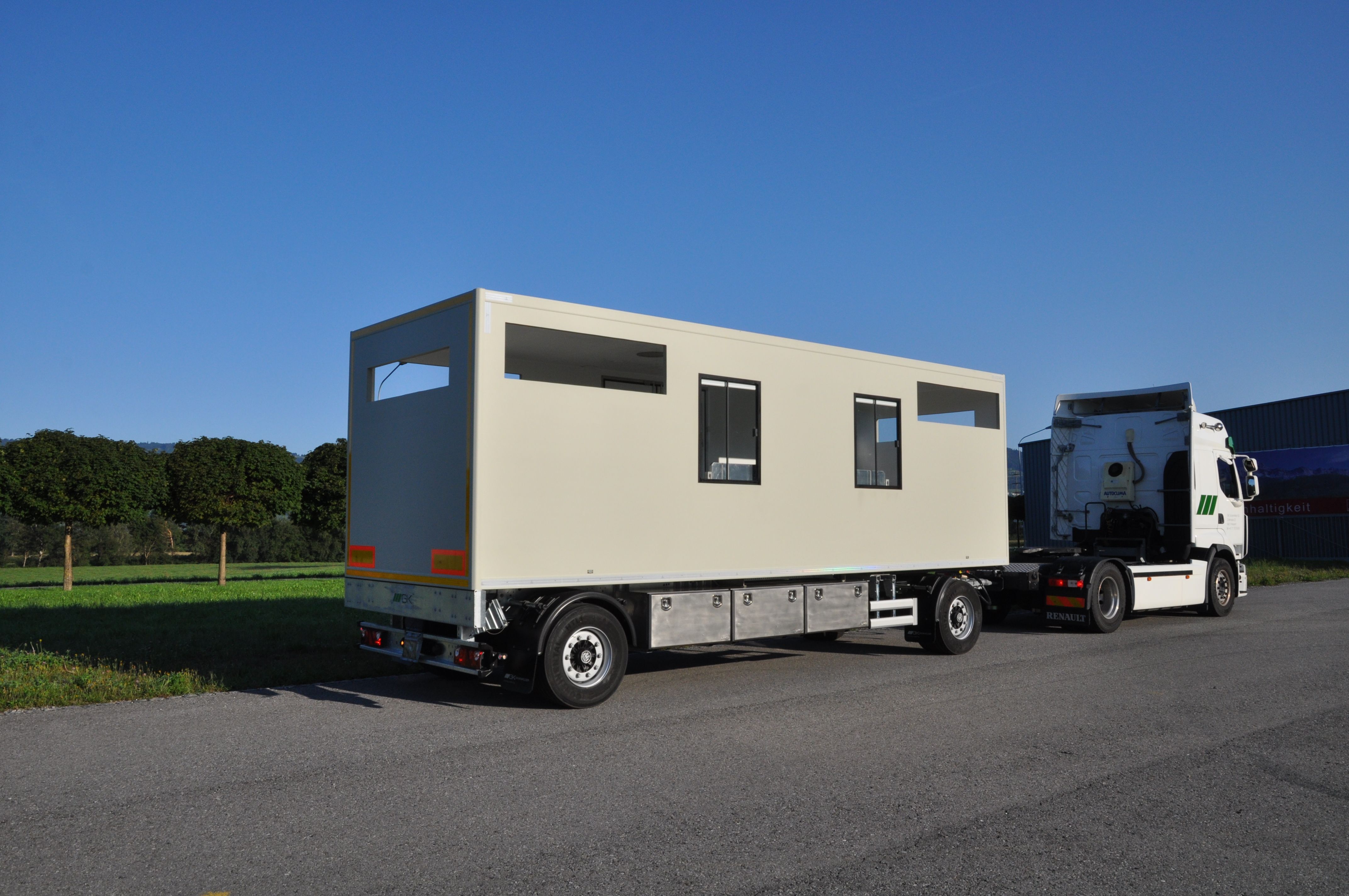 Für die Schweizer Armee haben wir einen Drehschemelanhänger mit Kastenaufbau entwickelt und konstruiert. Das Projekt umfasste die Herstellung des Anhängerchassis, die Montage des Fahrgestells sowie den vollständigen Aufbau inklusive sämtlicher Anbauteile.
