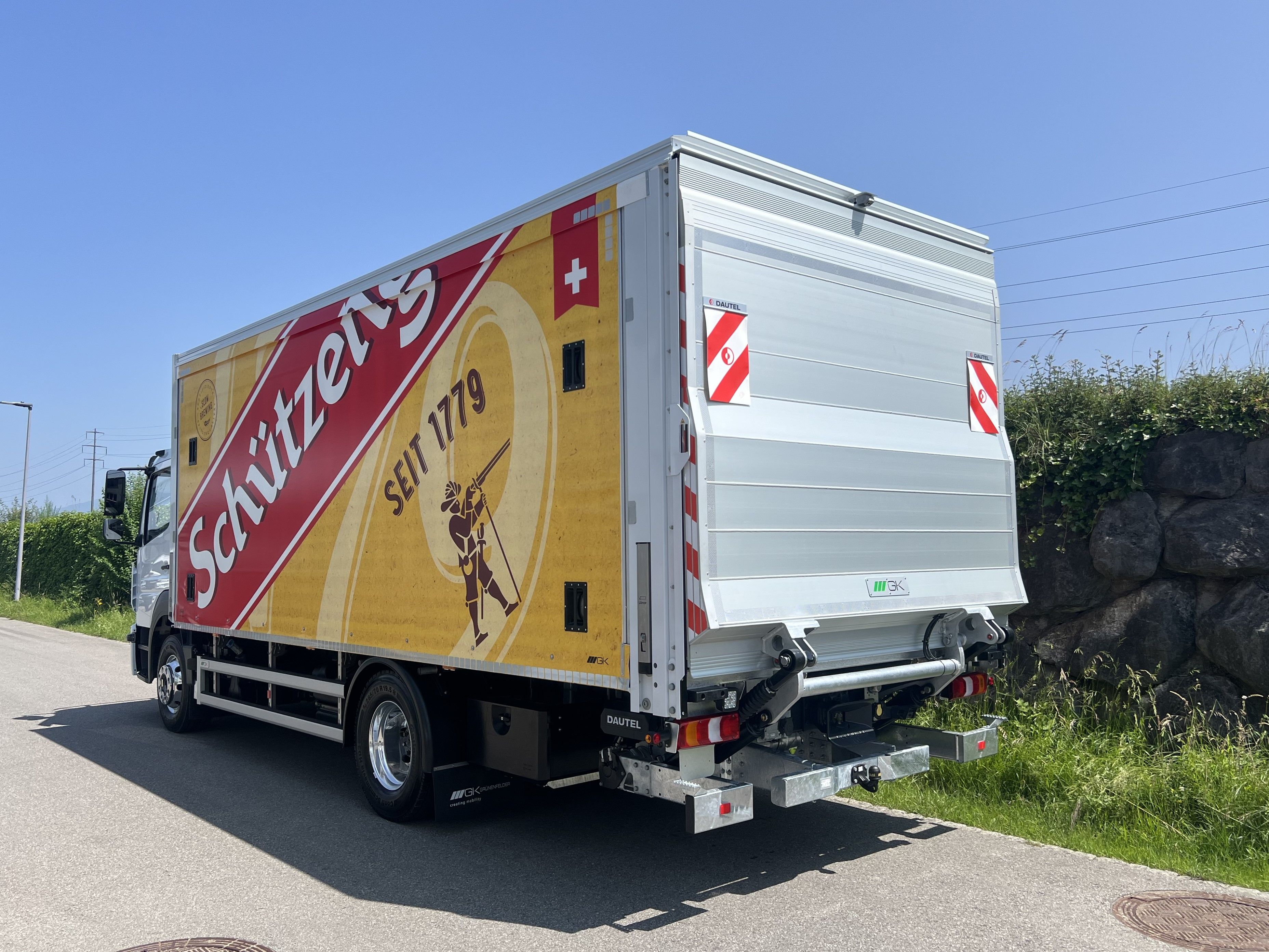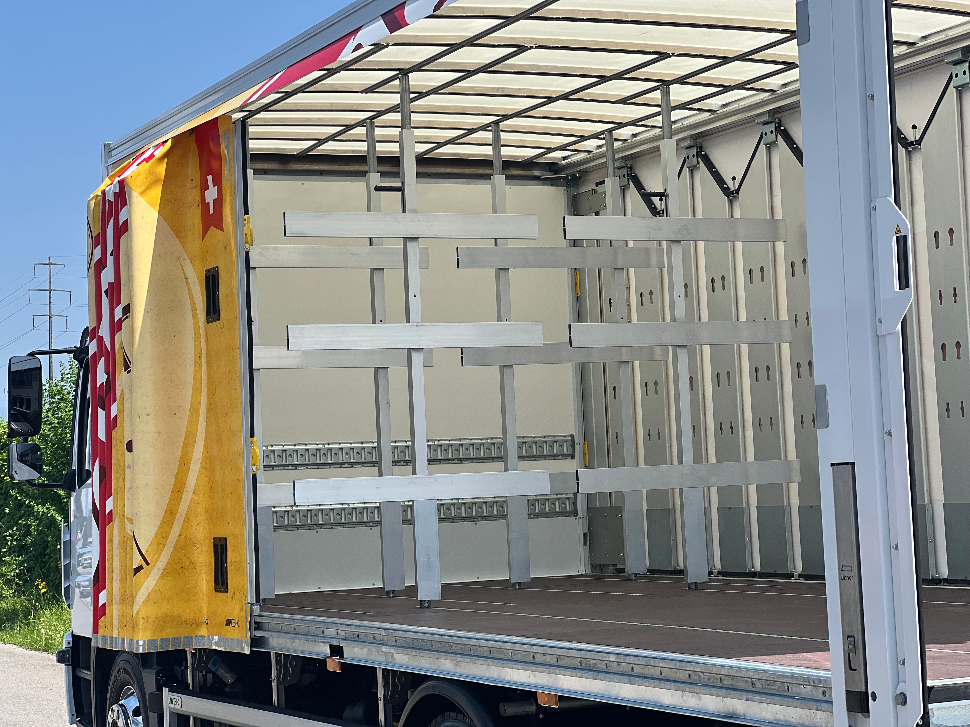 Tradition im Tank, innovative Technik auf der Strasse: Für die Brauerei Schützengarten AG haben wir einen Schiebepaneelen-Brückenaufbau realisiert. Die Lösung verbindet robuste Technik mit durchdachter Funktionalität und ist optimal auf die Anforderungen der Stückgutlogistik im Getränketransport abgestimmt.