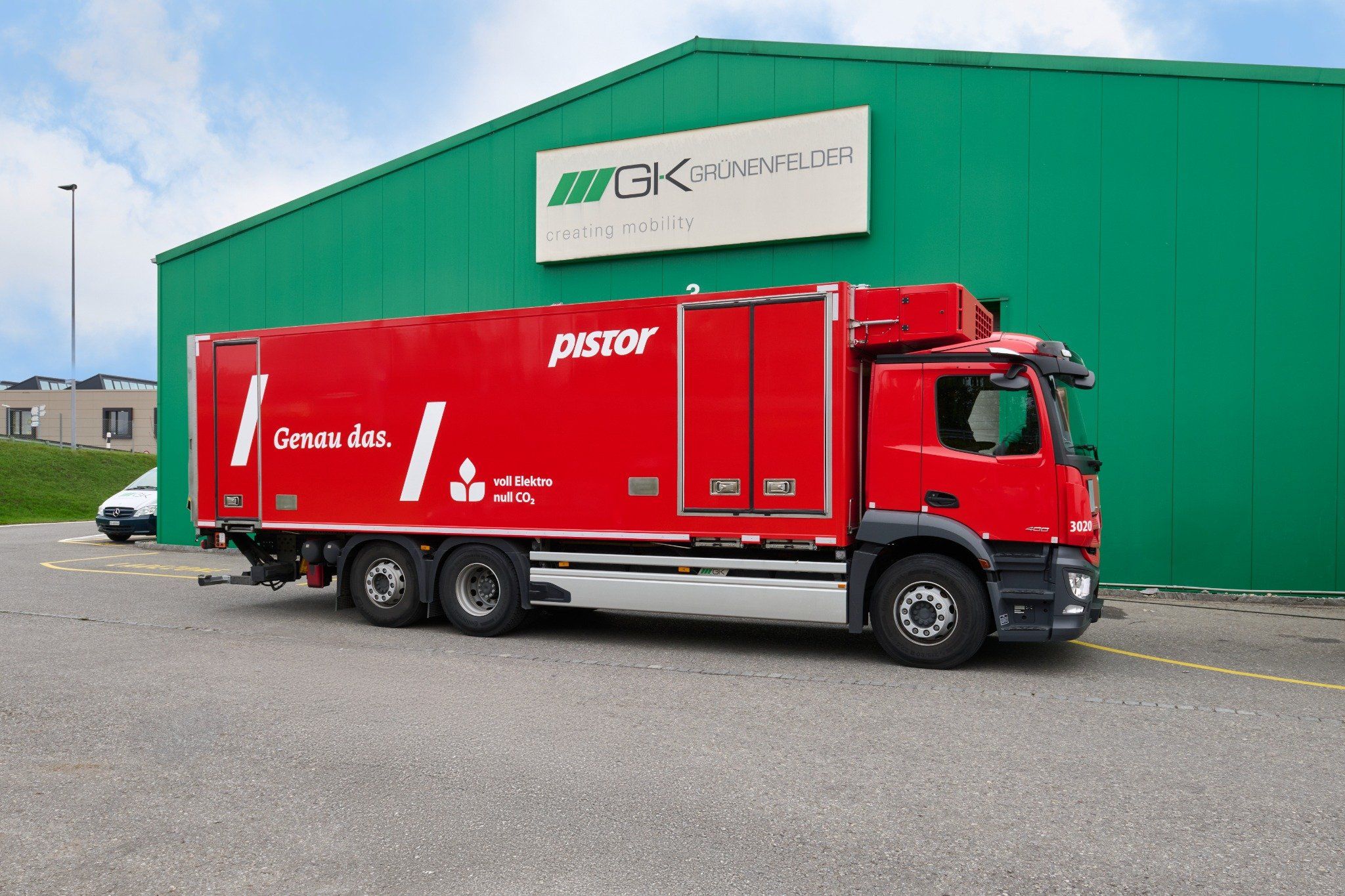 Für die Pistor AG realisierten wir einen hochkomplexen, technisch präzise gefertigten Kühlaufbau, der zwei separate Kühlzonen umfasst. Eine längsverlaufende, starre Trennwand ermöglicht den gleichzeitigen Transport von Tiefkühl- und Frischwaren in voneinander getrennten Temperaturbereichen.